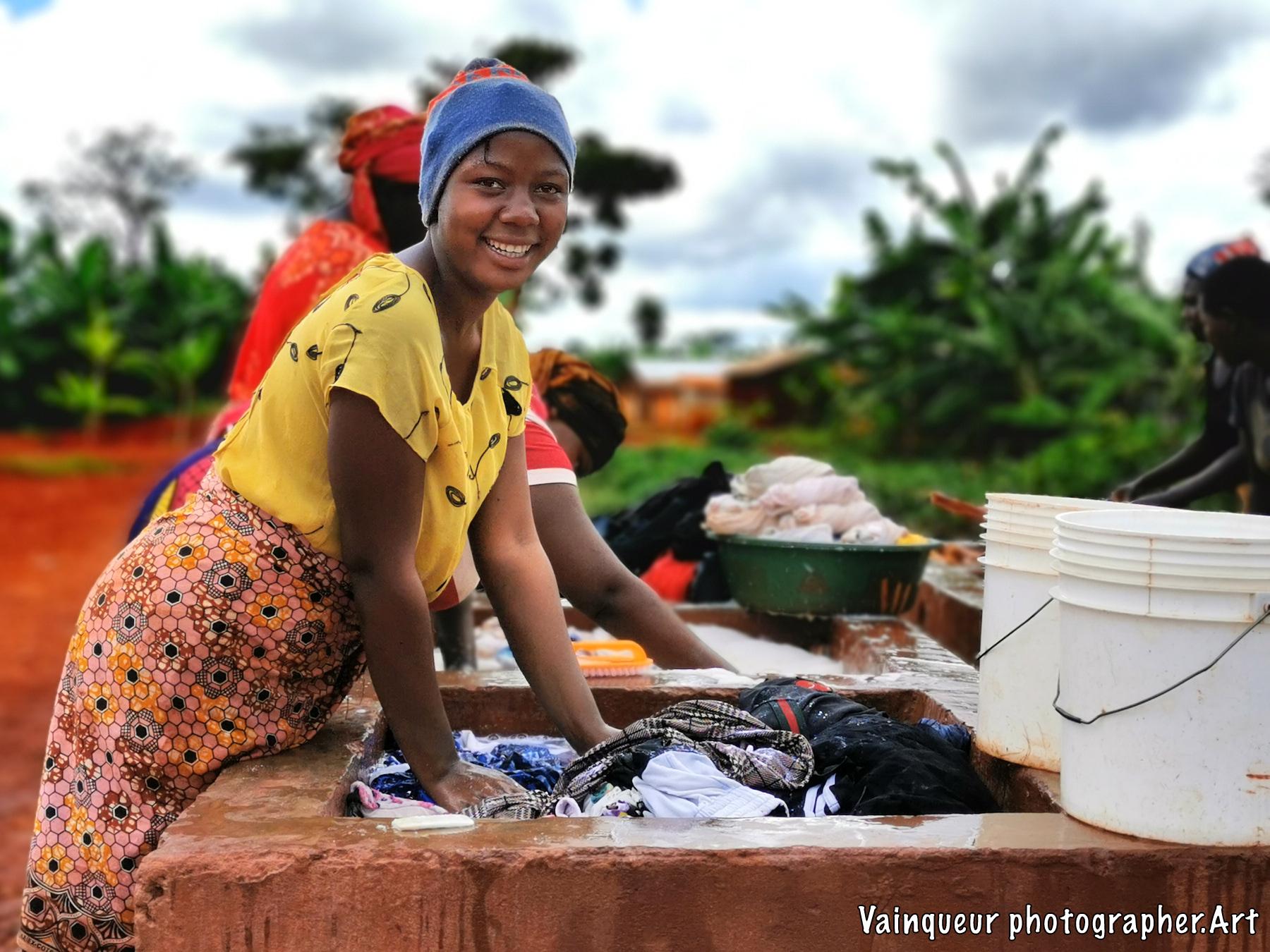 While passing to Zone 10 in the Burundian parts, I met several women and girls who were washing clothes. The girl in the photo is called Nadia. Today, she decided to wash the clothes and dresses of her boyfriend and sister and the boy's neighbor. The cleaning place is located a few meters from her house.