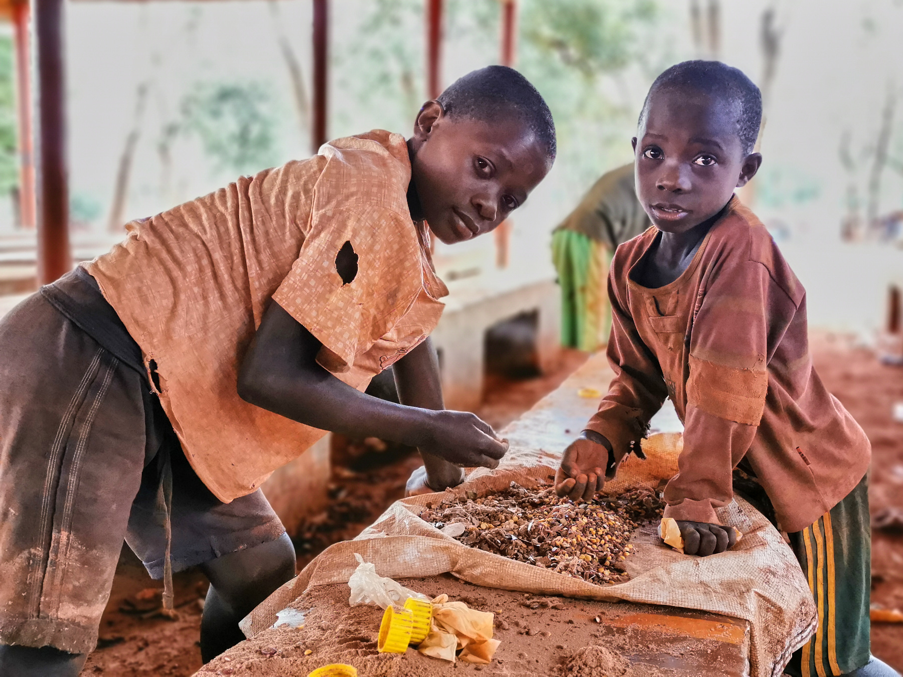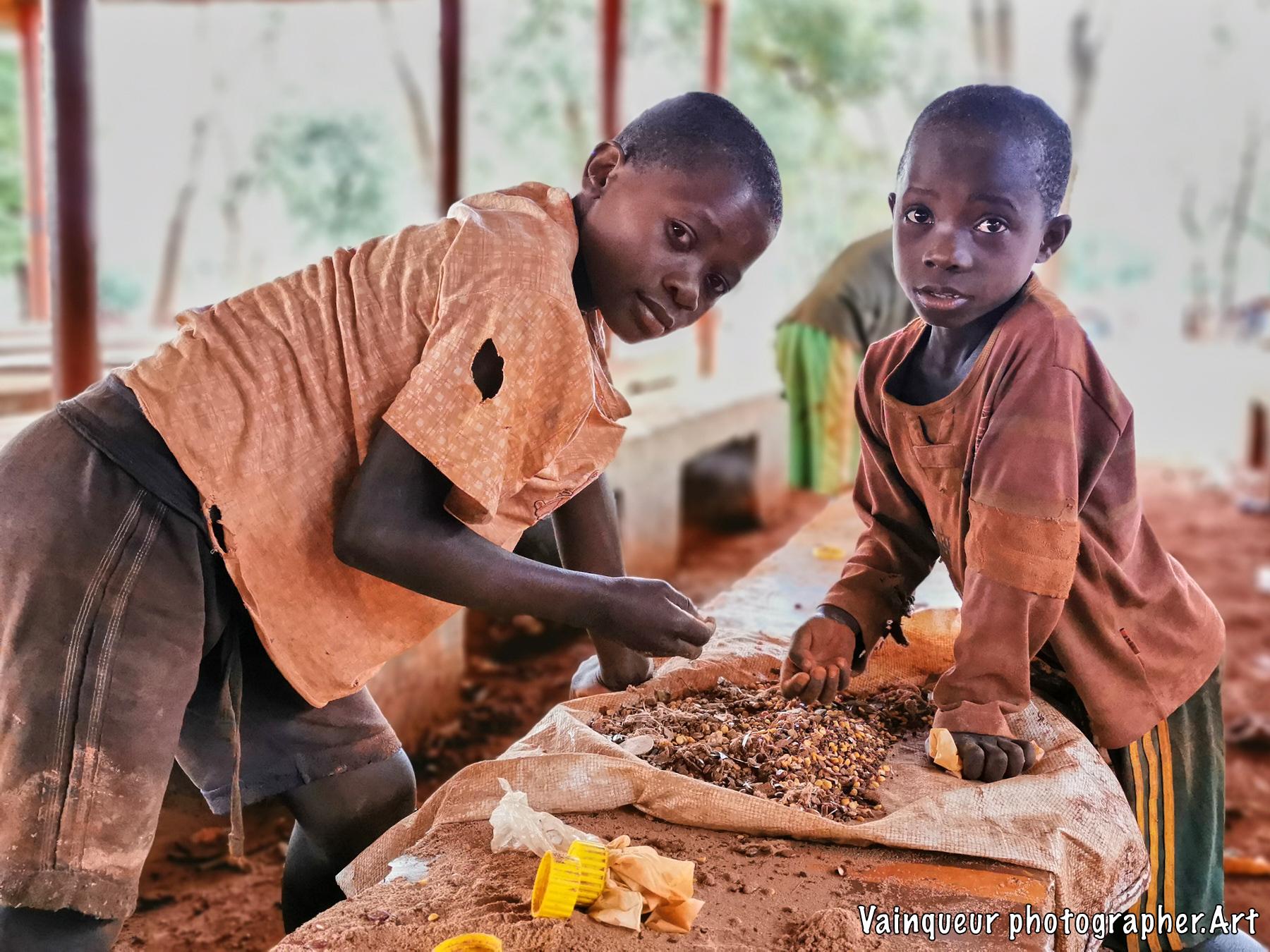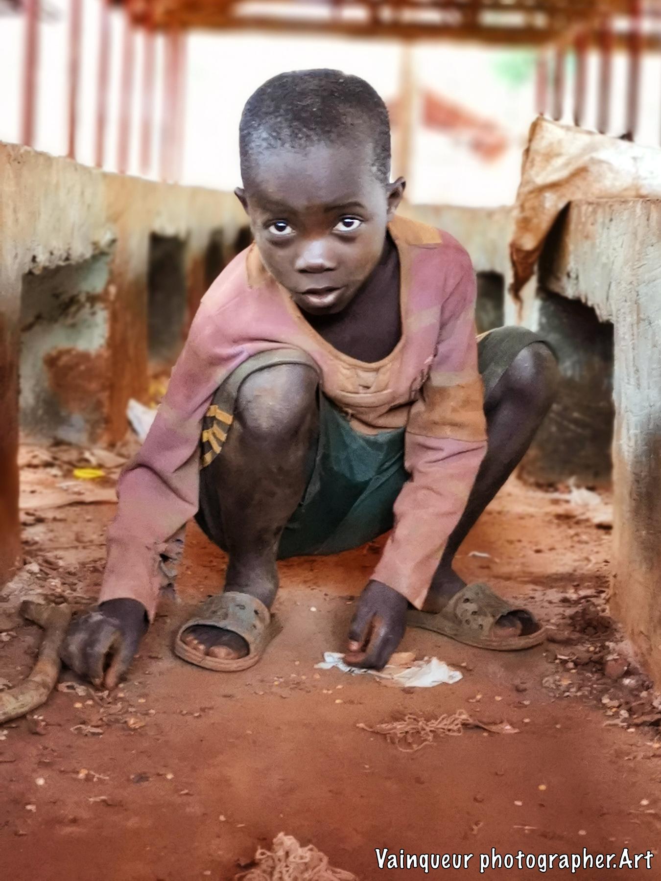 A friend told me that after distributing WFP food, there was a group of children picking beans in that place. I headed for distribution to see these children. When I really got there, I met these kids in action and the picture I saw was very inspiring. I stayed at least 10 minutes to understand why they were doing it. They noticed me staring at them and stopped immediately. I encouraged them and they continued to work for a few minutes. I asked them a question to get an idea of their activities. One of them told me, "We pick beans to sell to pig farmers and make a little change, so we have the courage."