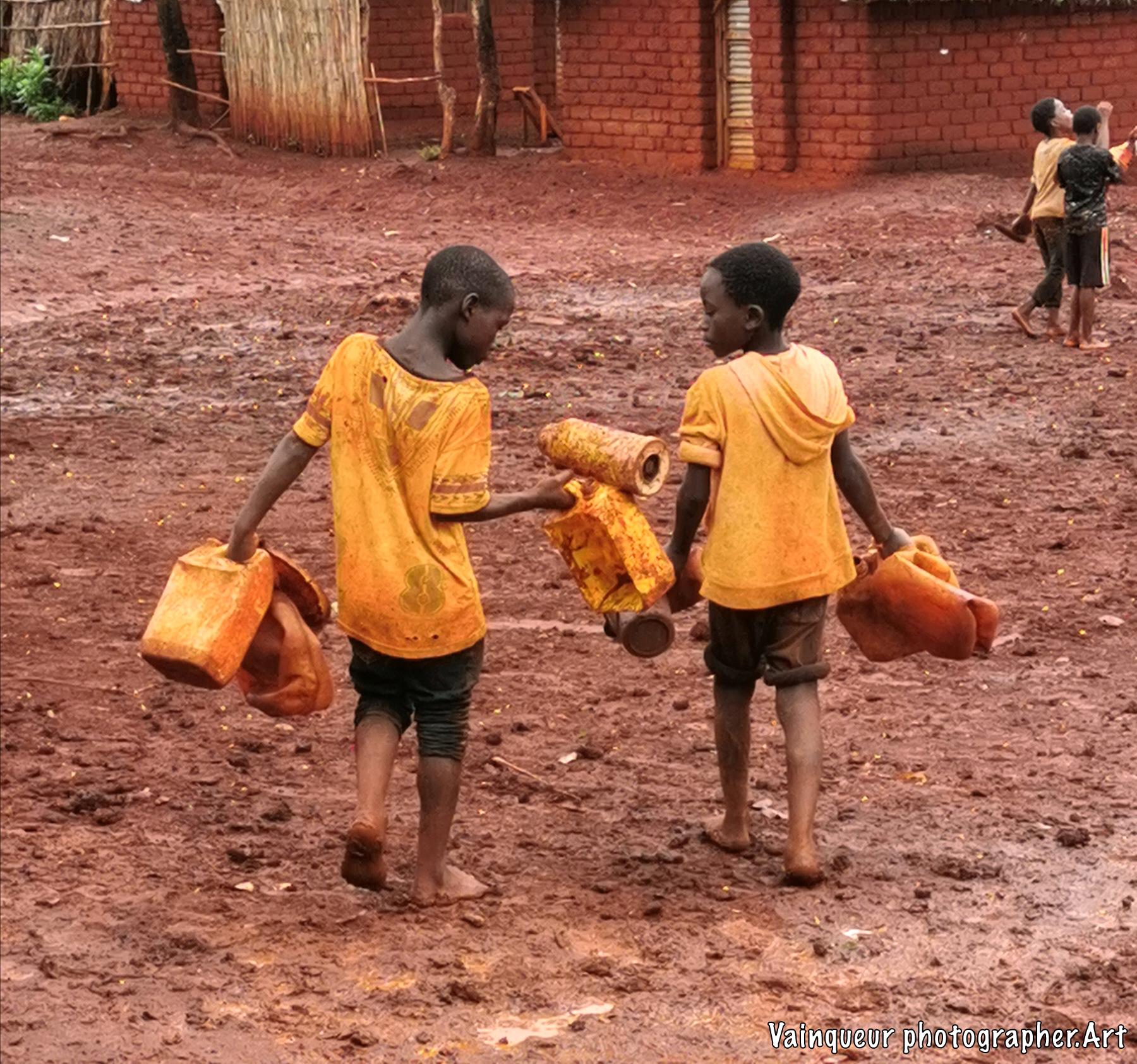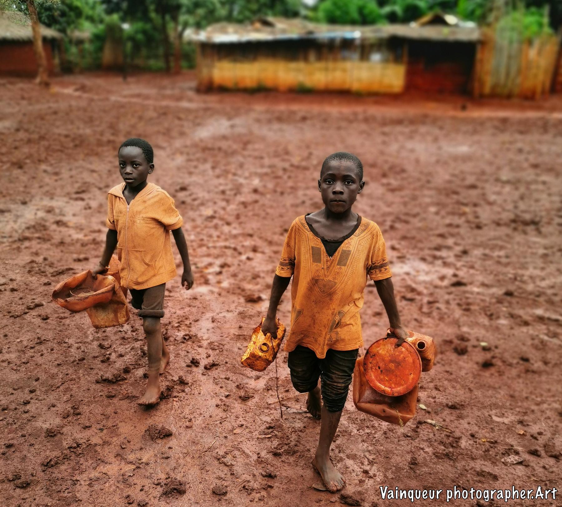 After a heavy rain, I have taken a photograph of the two young children who came to the trash to pick up the plastics.