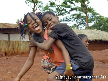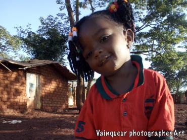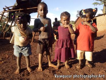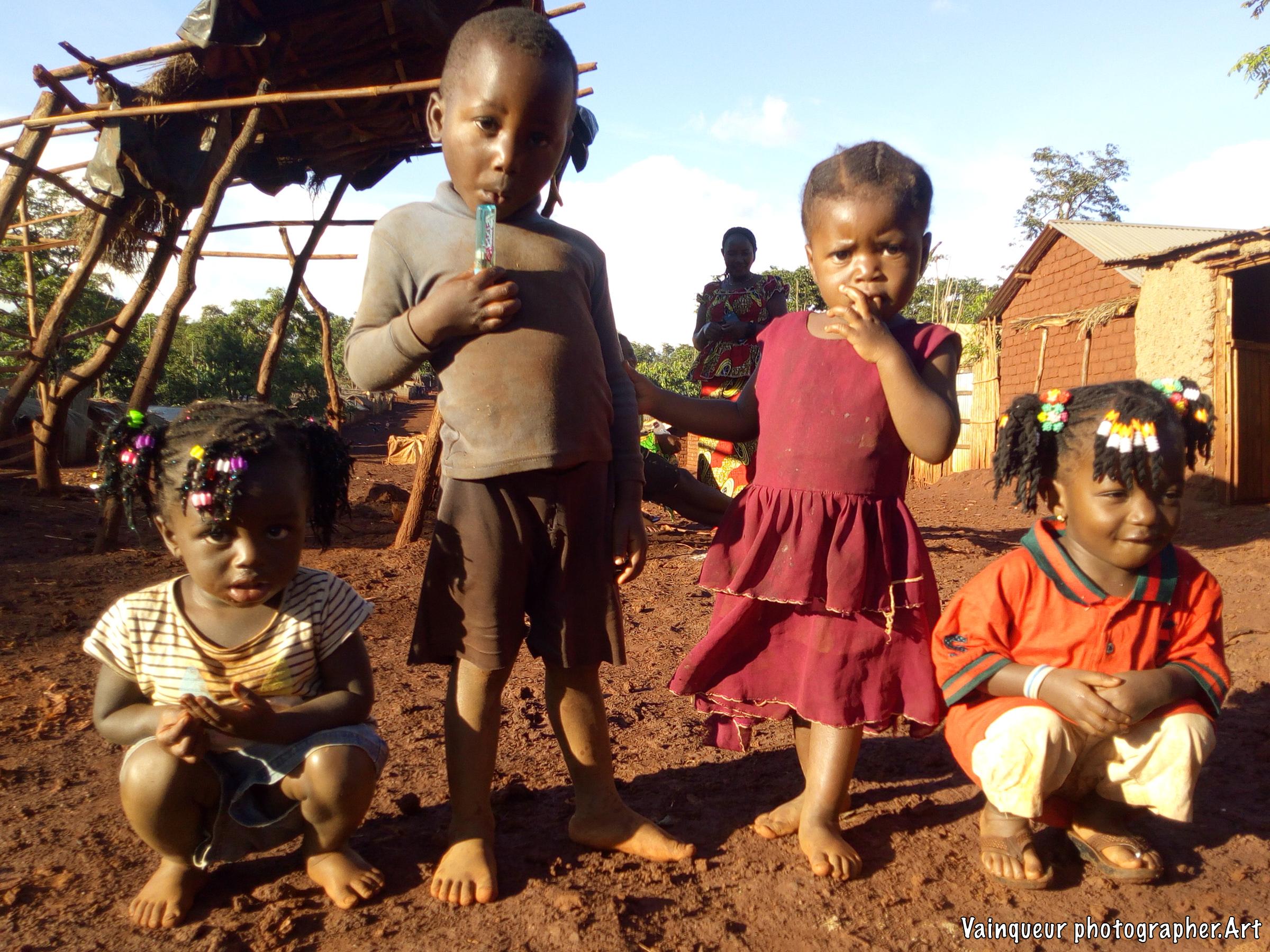 Marceline with her friends, all were born in the camps, they all live in the same area. They play their children's games together every day.