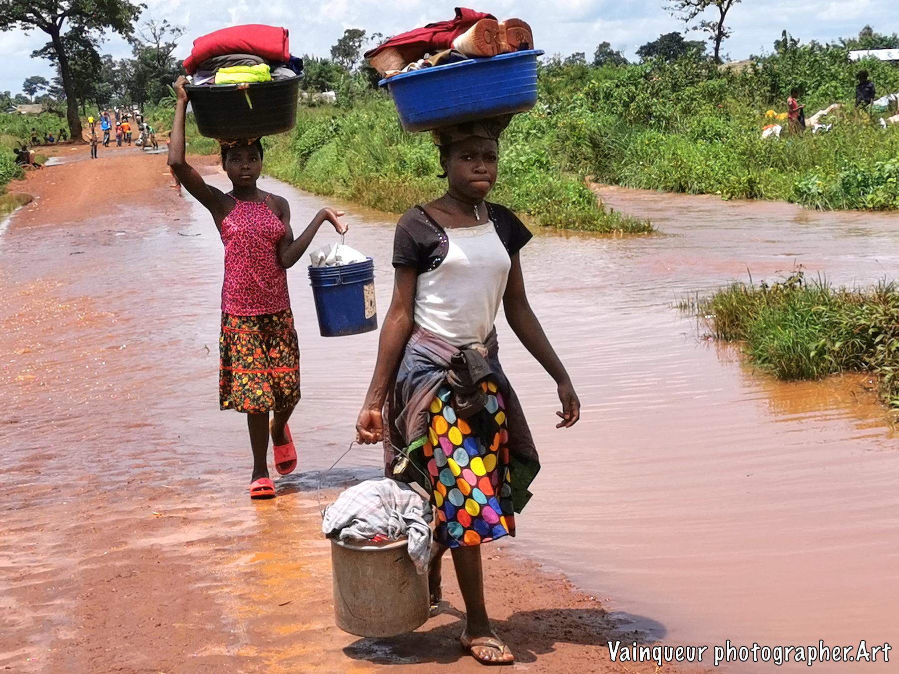 Congolese and Burundian refugees go to the river every day to wash their clothes. You can see young girls coming from the river in this photos. They told us, "We are already big girls and we have to help our brothers, our sisters and our parents in washing clothes."
