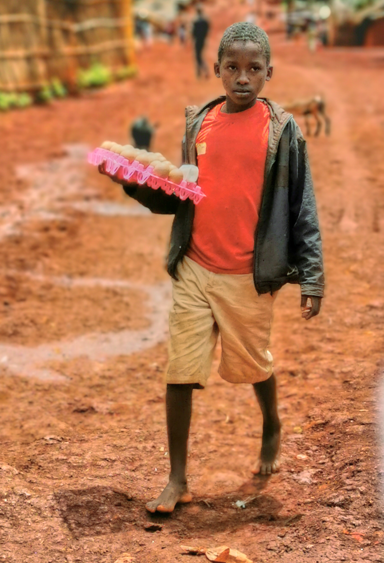 The little egg seller is a schoolboy. He likes to do his business during this period of confinement. The little boy told us that he shouldn't stay at home and do nothing: "Better to do something else to solve some of the needs that I miss."