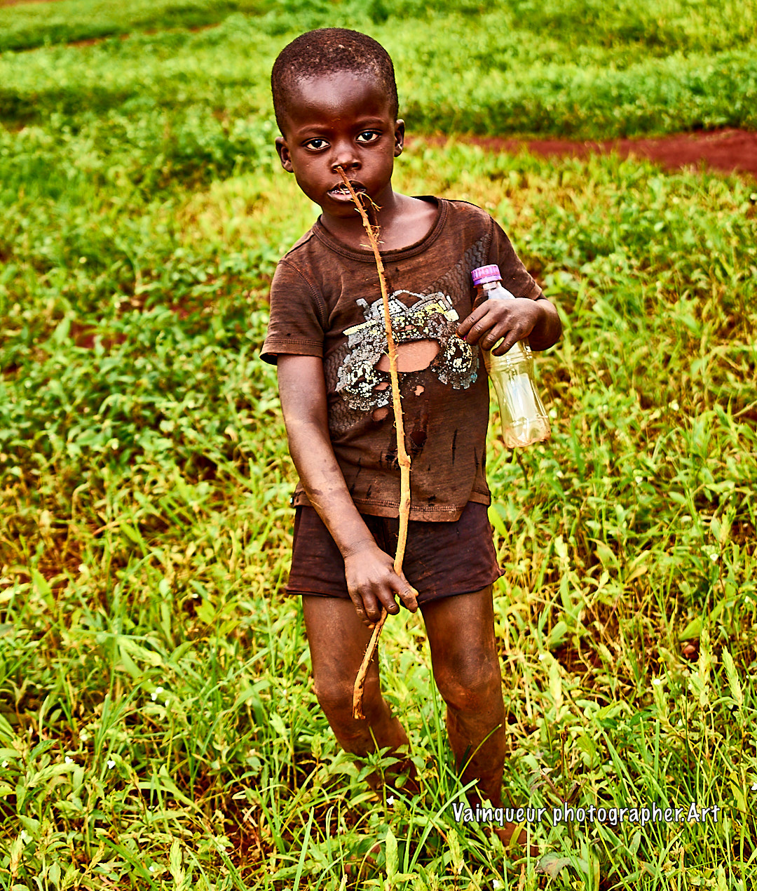 After my return to Nyarugusu, I met a child named Jonas sitting on trees in stagnant water, which the locals called "Kichiba". The little boy was lonely while other children were celebrating the New Year's Day in their families.