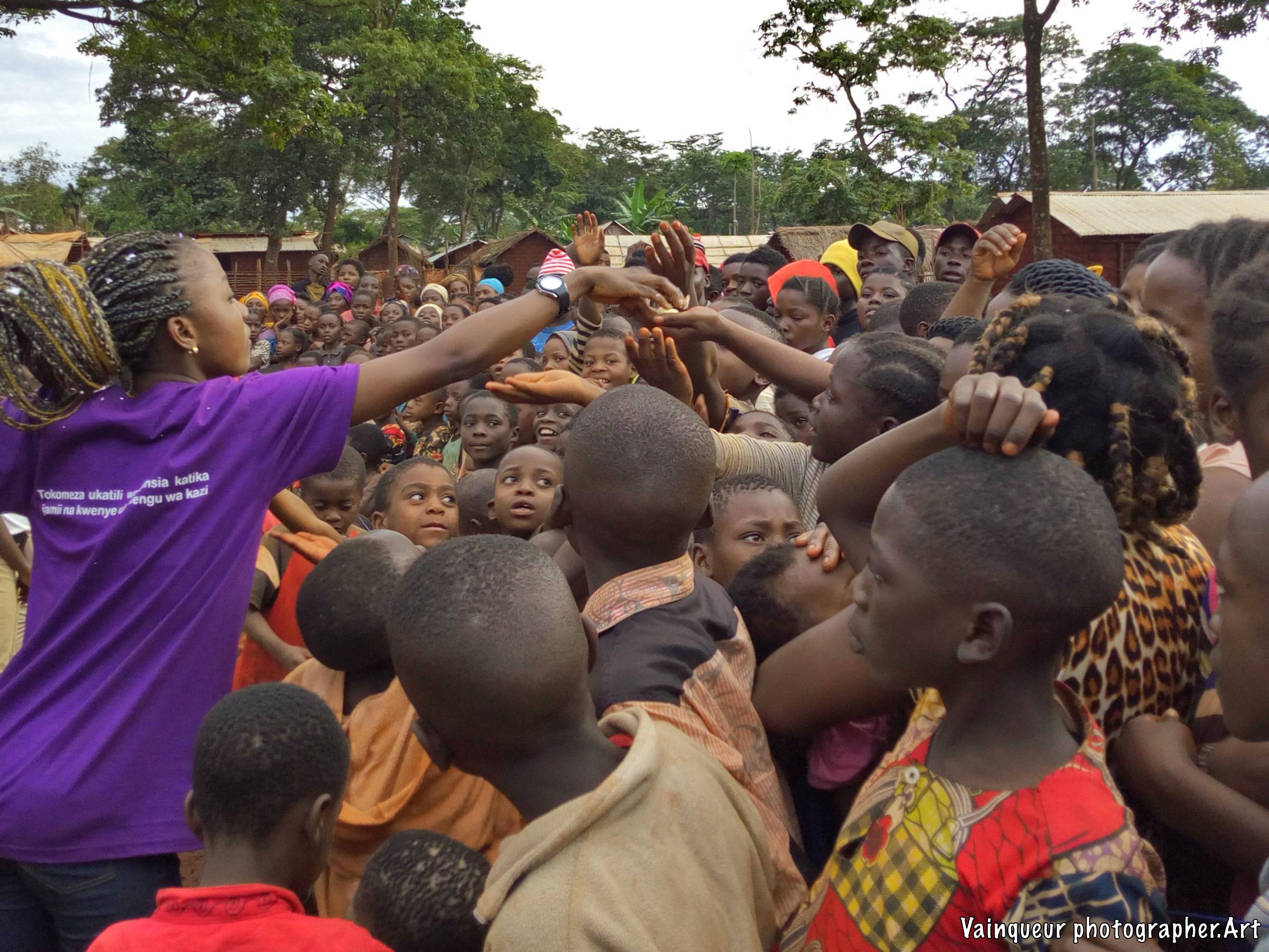 Today we was in birthday 's Marceline in village A1, there celebrated many refugees.