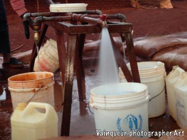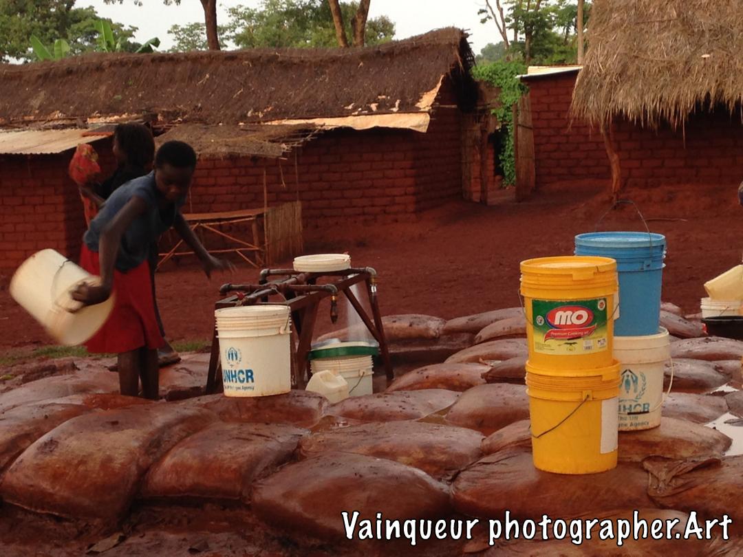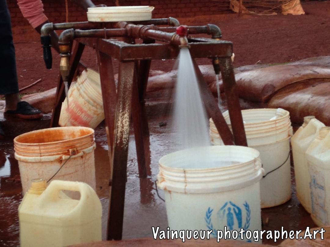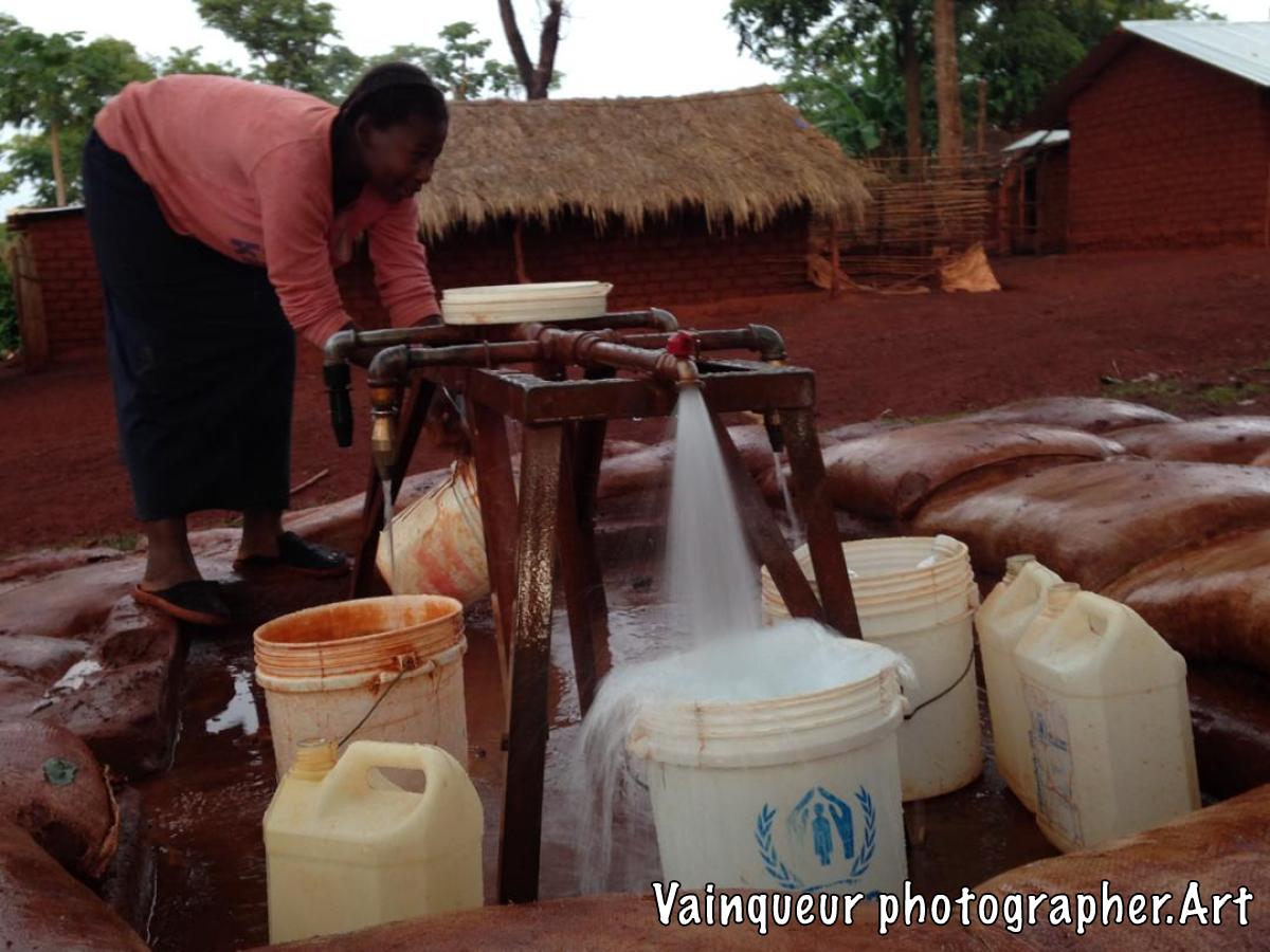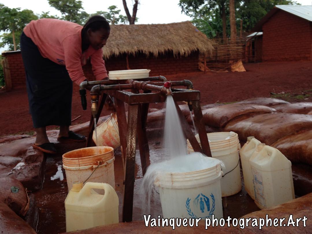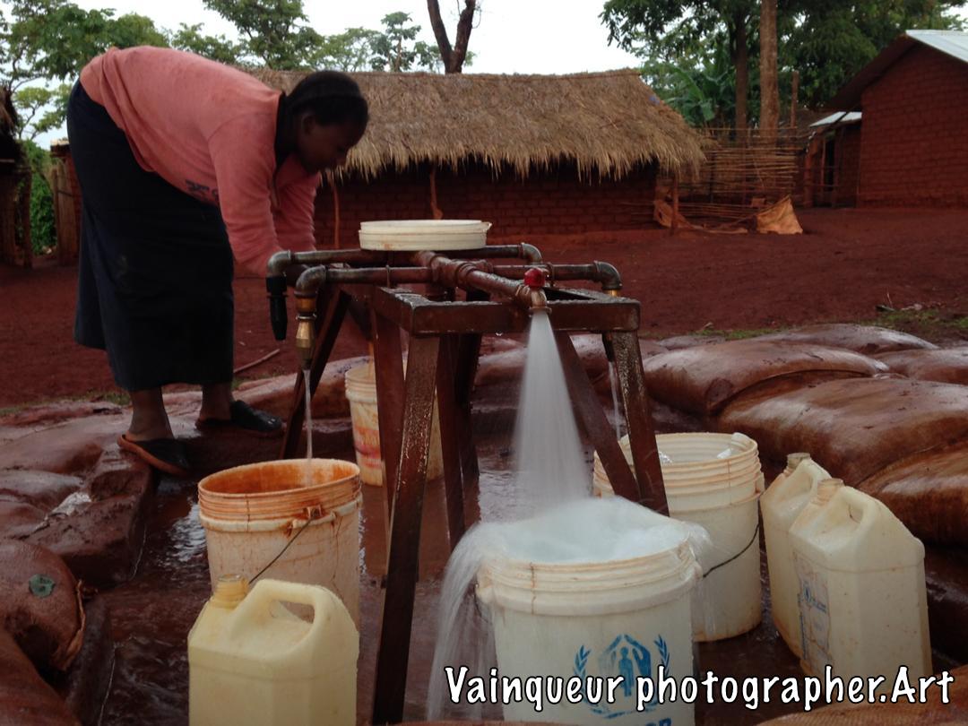 A water pump that pours water into the D1 village Nyarugusu camp Tanzania. Serves at least 10 refugee homes. This pump is controlled by NRC and financed by UNHCR.