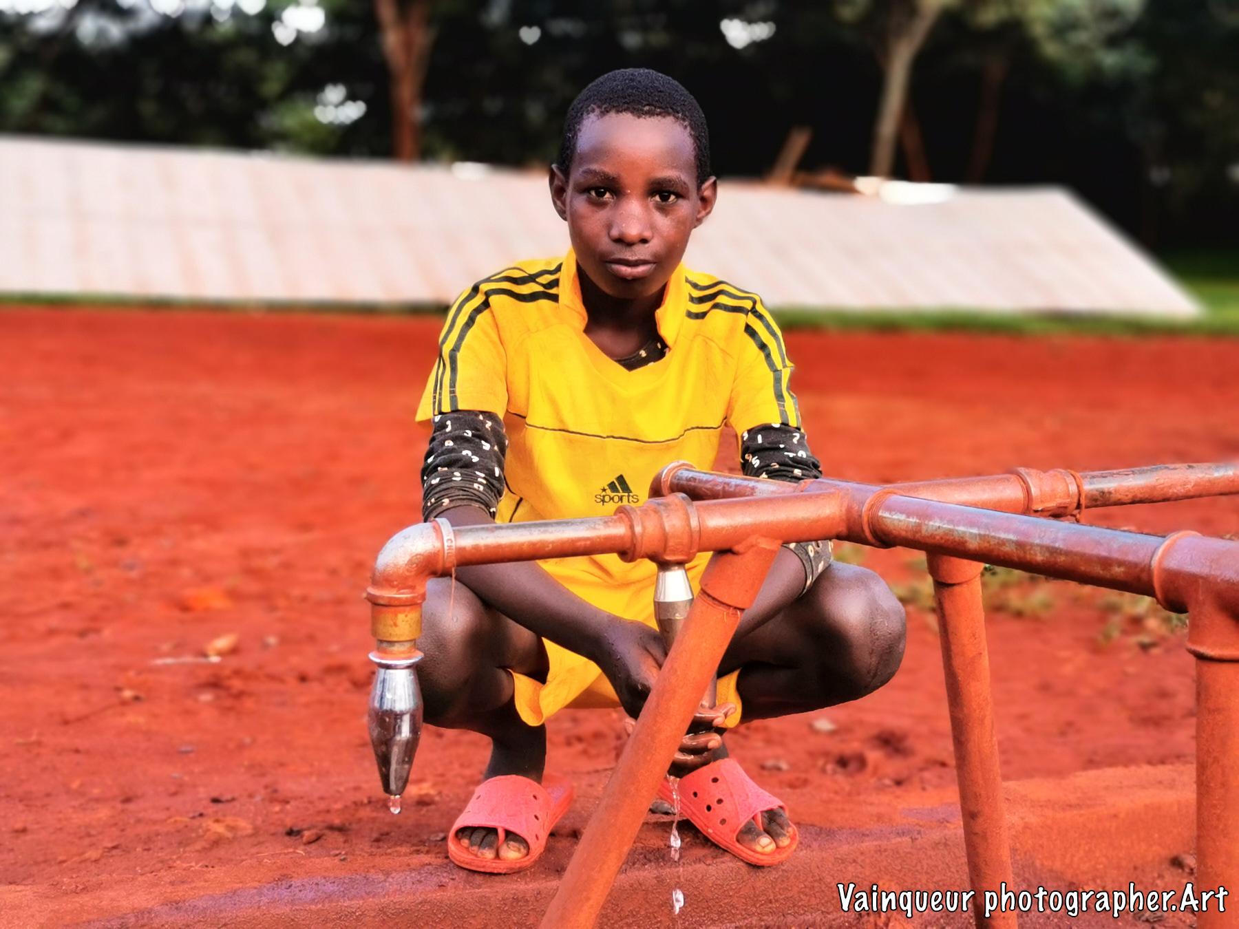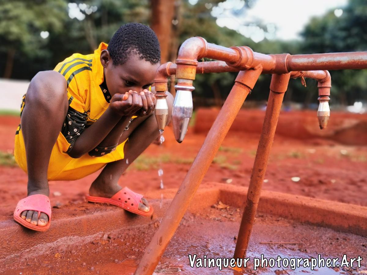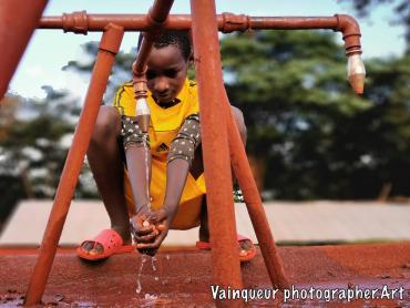 This young man is called Olivier, he is a passionate sportsman. He told us that after a training or a match, he headed to this pump to drink water. He added, that this pump always helps him to quench thirst.