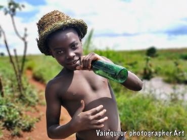 During my short visit to Zone 9 I discovered a young talent who makes a hat with the leaves. He said: "I and my friends spend our half of the day here at the river often in the vacation and that is why we take advantage of looking for the very light "nyasi" sheet to make the hat." And he ended by saying, "We wear these hats under the sun after finishing swimming".
